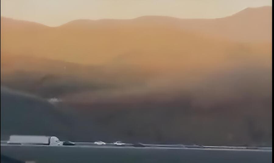 Old Ridge Route in Castaic, California gas leak/rupture on fire. SO LOUD